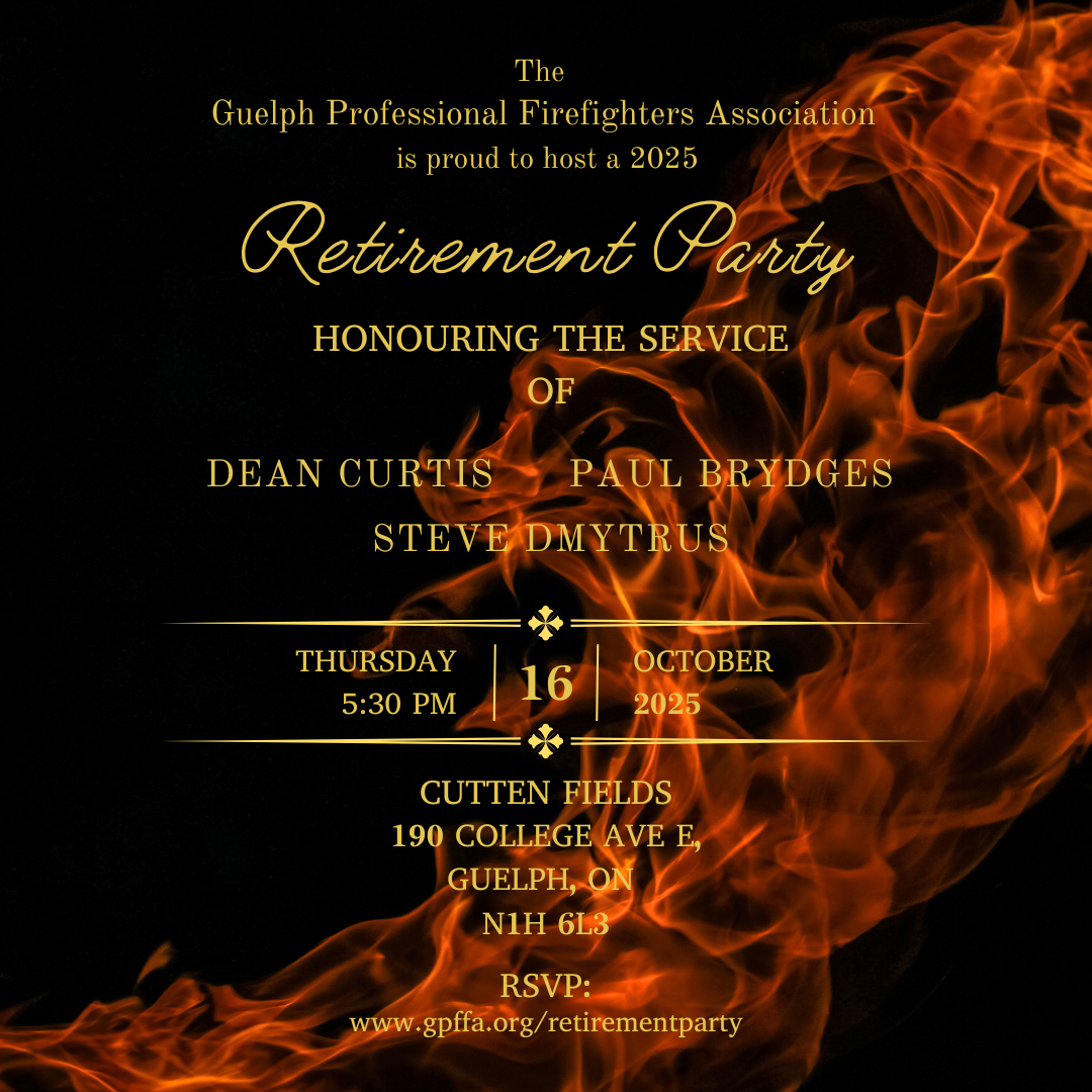 REGISTRATION OPEN UNTIL OCTOBER 9th Please enable JavaScript in your browser to complete this form.Name *FirstLastContact Number or Email *Please insert your email or contact numberAttendee Status: *Select an OptionCurrent GPFFA MemberRetired GPFFA MemberRetiree being Honoured at eventGFD Management / AdministrationCity Manager / DelegateOther Fire Association MemberPlease indicate your status.Dietary Restrictions: *Not ApplicableVegetarianVeganPescatarianDairy-FreeGluten-FreeMeal served will be Buffet style with dietary options. Please indicate any dietary restrictions to ensure options are provided:Honoured Members GuestsNumber of Guests0 - Just me12345678Please indicate the number of guests that will be attending with you. We ask that guests are limited to immediate family & their spouses/significant others. Please contact the GPFFA Secretary ([email protected]) with the names of your guests.Are you bringing a guest?YesNoPlease be advised Retired GPFFA Members will receive their meal free of charge. Spouse/Guest of retired members will be required to cover the cost of their guests meal ($50). This payment amount will be donated to the Guelph Firefighters Benevolent Foundation. *Yes - I will pay for Spouse/Guest MealStarting in October, attendees who sign up but do not attend (or cancel 7 days prior) will be asked to cover the cost of their meal. This payment will be donated to the Guelph Firefighters Benevolent Foundation to assist Local Area Hospitals. *I understand and will make payment in the form of a donation to The Benevolent Foundation for non-attendance.Guest Name *FirstLastMeal served will be Buffet style with dietary options. Please indicate any dietary restrictions to ensure options are provided: (copy) *Not ApplicableVegetarianVeganPescatarianDairy-FreeGluten-FreeComment or MessageSubmit